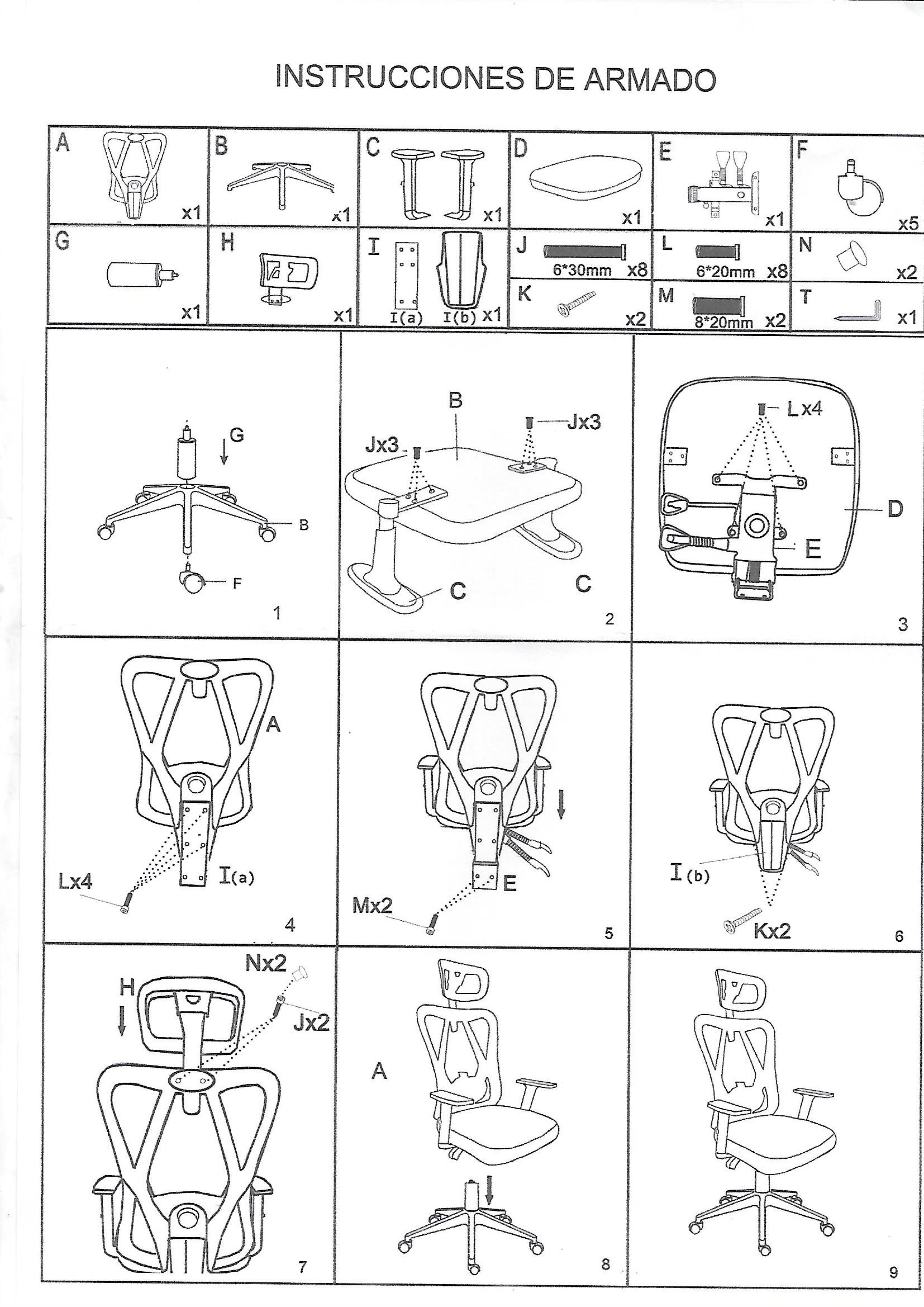 Sillon con respaldo en red y asiento tapizado en tela negra. Respaldo con apoyo lumbar regulable. Con apoyabrazos regulables. Sistema neumático. Con apoyacabeza. Silla ergonómica. Peso máximo que soporta: 150 kg.